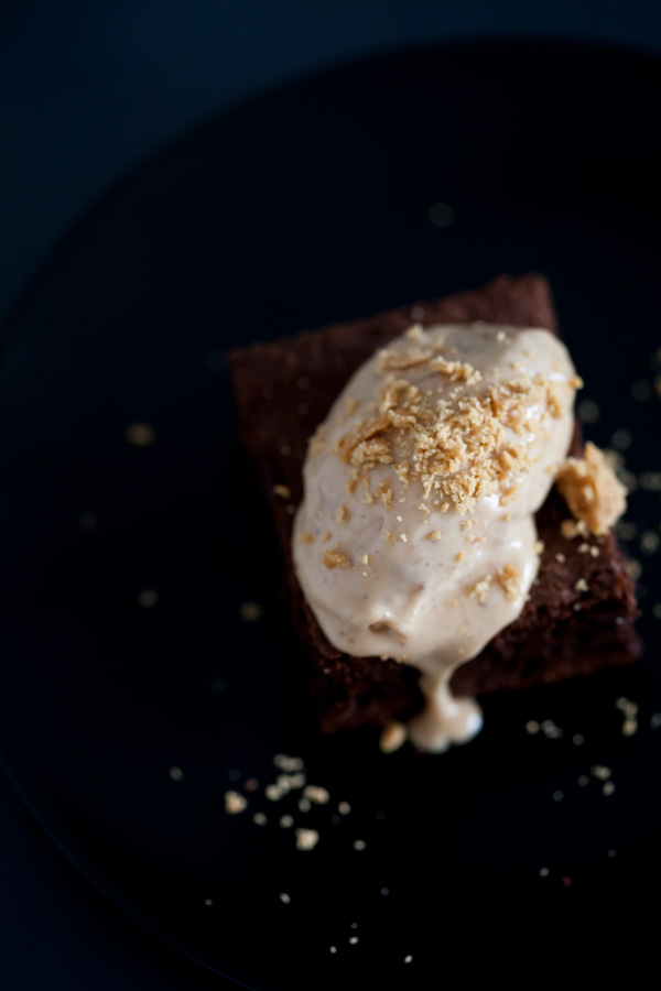 Después del susto, la alegría y el descanso me hubiera tomado un trocito de este Brownie con helado de turrón y hubiera invitado a todo el barrio.